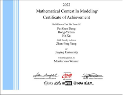 图1 学生参加美国、全国大学生数学建模竞赛获奖证书