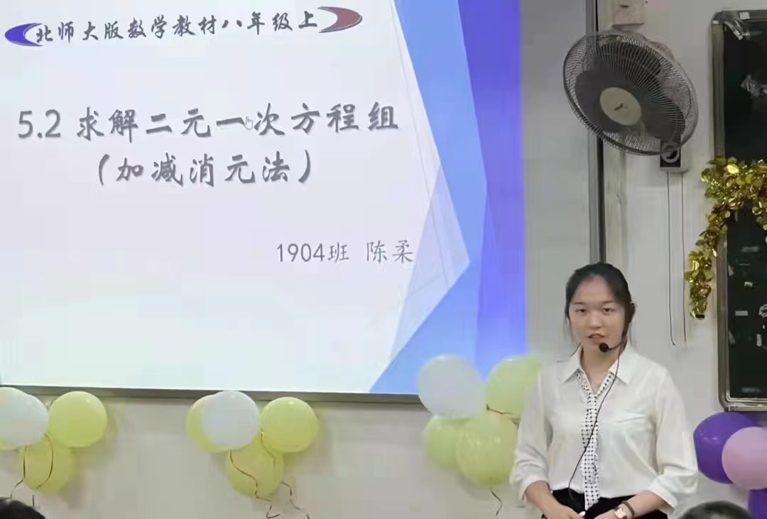 师范技能大赛共分为三个项目,项目一为教学技能类。教学技能类包括说课和模拟授课环节,要求学生使用多媒体辅助教学,教材选用数学专业中小学教材,由19级各师范班进行班级内部比赛推选,再进行院内选拔赛。经过我院老师的评选,最后推出5名选手代表数学学院参加嘉应学院第十二届师范技能大赛决赛,他们分别是1901班邓奕君、1901班钟远婷、1903班李俊杰、1904班陈柔和1906班丘宇红。
