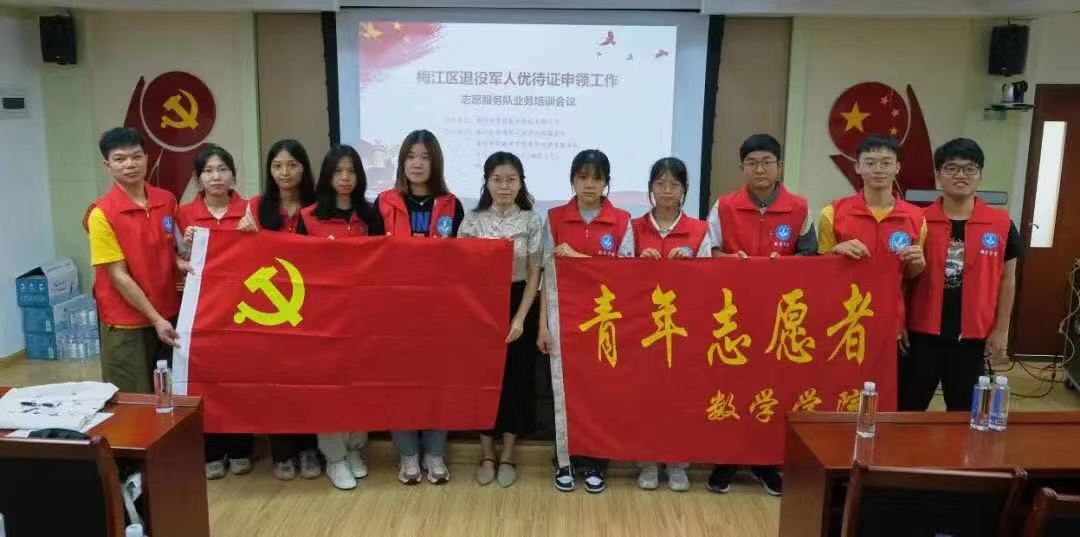 为进一步做好退役军人和其他优抚对象建档立卡、信息录入、申领优待证等工作,并动员广大志愿者积极响应,我院开展了“青春献礼二十大,强国有我新征程”暑期“三下乡”社会实践活动之退役军人优待证申领培训志愿服务活动,协助梅江区各镇街道退役军人服务站工作人员为退役军人做好服务保障工作,营造拥军优属浓厚氛围。