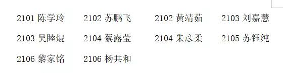 专业课成绩优秀奖获奖名单如下