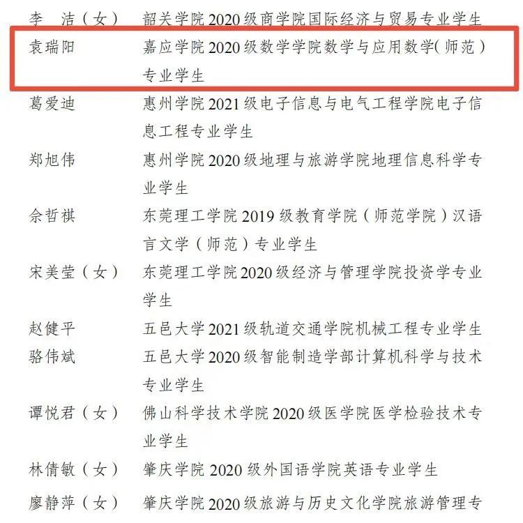 近日,广东省学生联合会公布了2022-2023年度“广东省优秀学生骨干”名单,我院学生党员袁瑞阳荣获“广东省优秀学生骨干”称号。