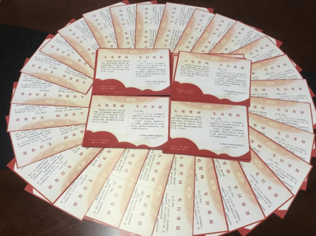 学院还为近期转正的毕业生党员准备了政治生日贺卡,表达学院对毕业生党员的美好祝福。最后,全体毕业生党员在两位支部书记的带领下,在田师3楼党建展厅庄严地举起右手,面向党旗,重温入党誓词,慷慨激昂的宣誓声,久久回荡。誓词虽短,但字字千钧,掷地有声,表达了毕业生党员为共产主义事业奋斗终身的决心。