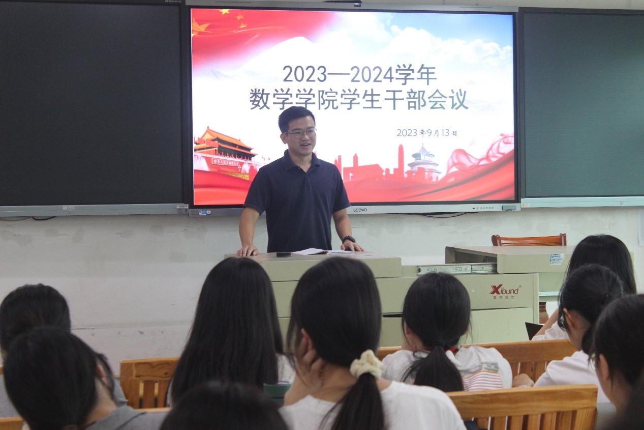 为进一步坚定我院学生干部的理想信念,加强学生干部队伍建设,9月13日下午,我院在田师416教室组织召开2023-2024 学年新学期学生干部会议。我院党委副书记李晓科、辅导员徐健、罗丽叶、房华玲、温志佳、团学干部以及各班班长、团支书参加了会议。会议由房华玲老师主持。