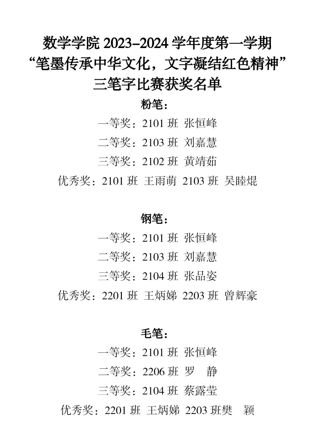 我院开展了“三笔字”比赛