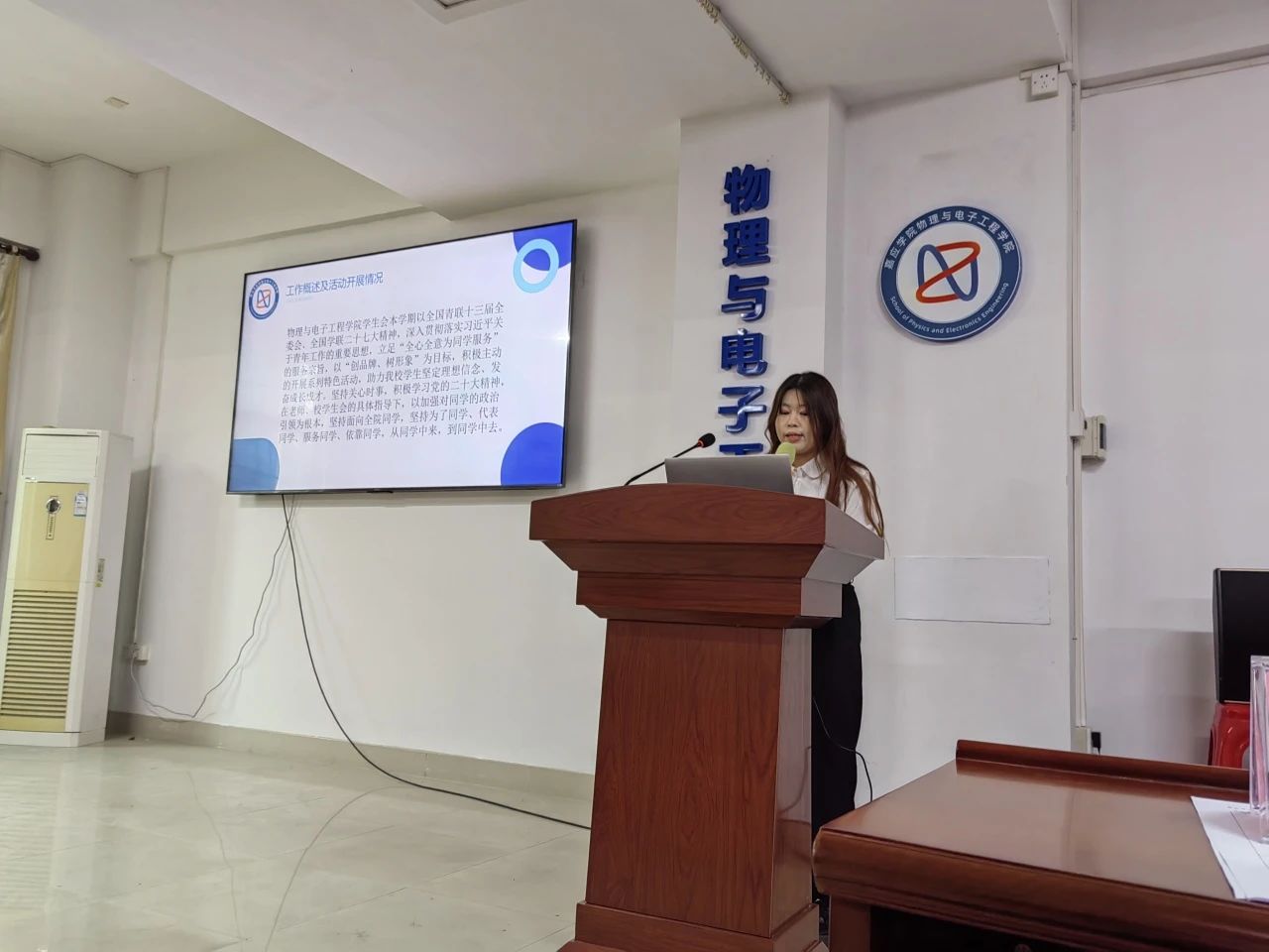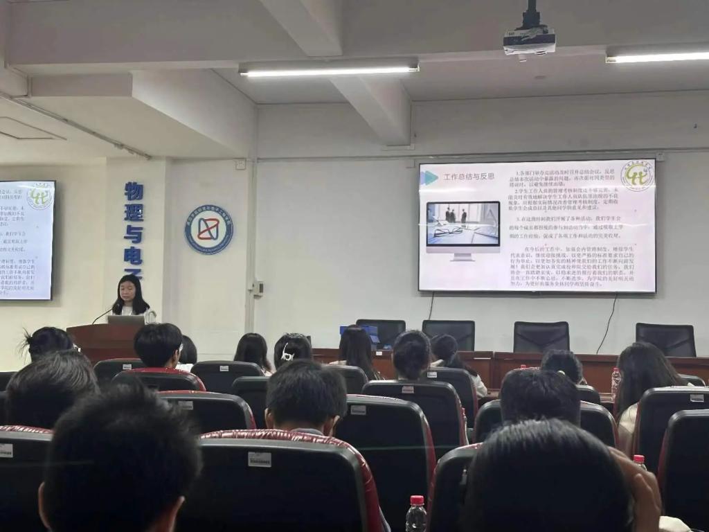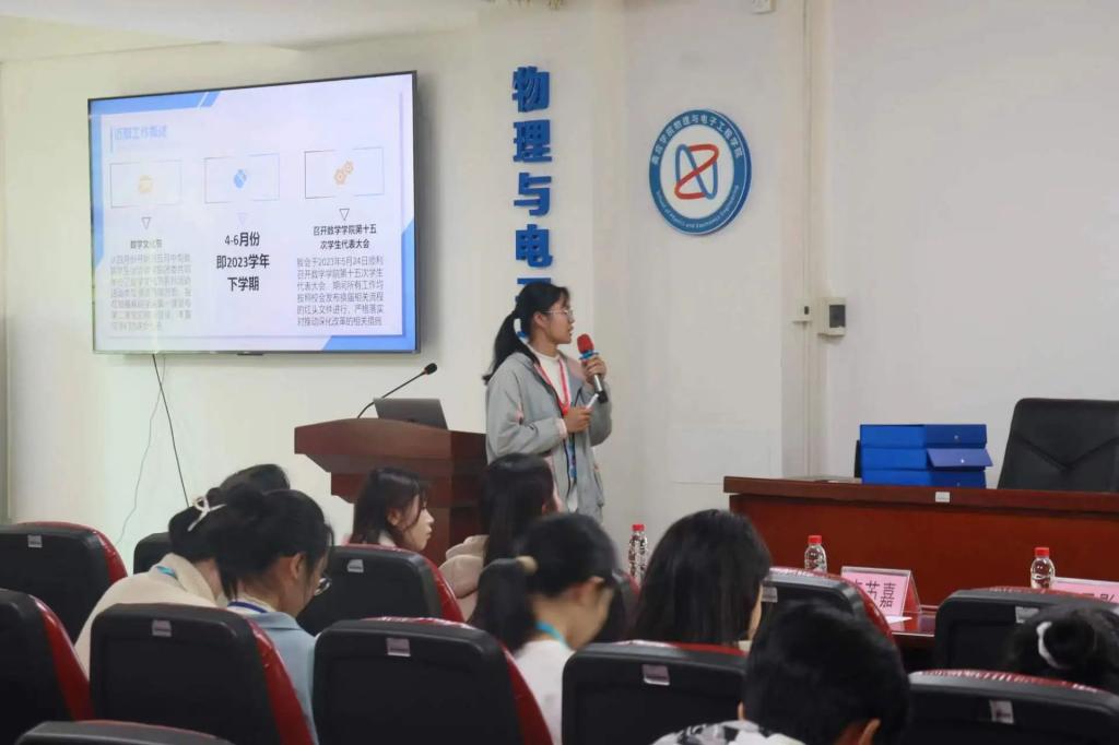 物理与电子工程学院学生会主席刘雪敏作工作汇报