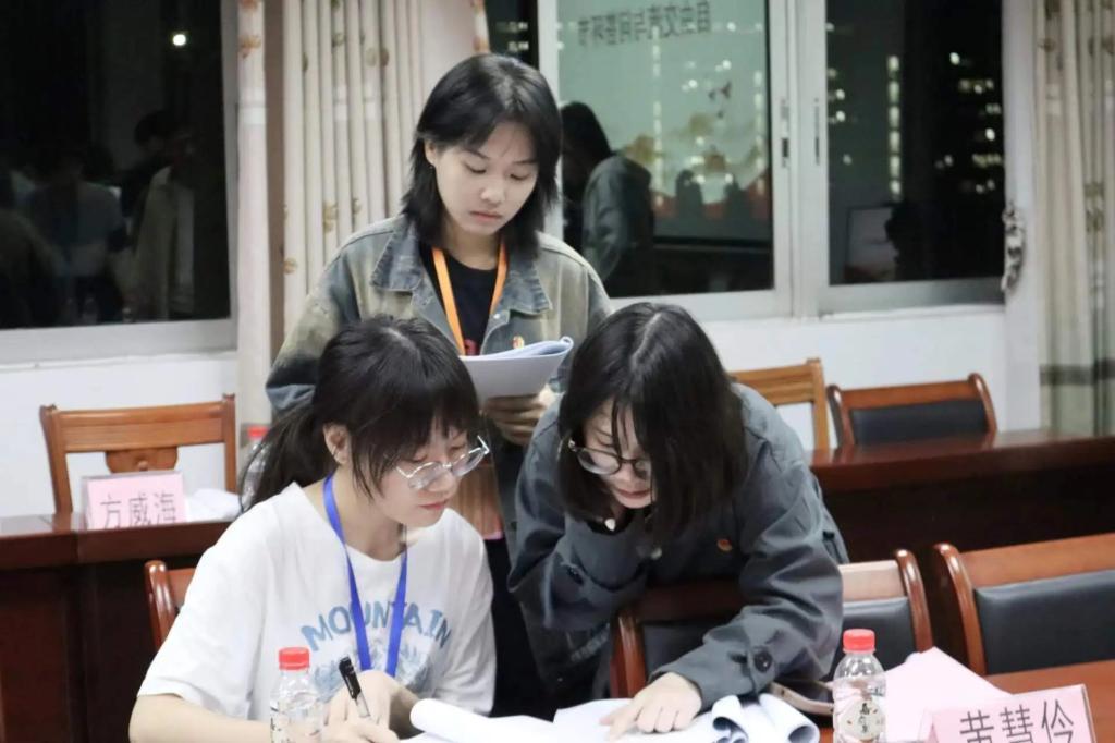 为加强我院学生会与校学生会、各兄弟学院的联系,增加沟通交流,我院联合物理与电子工程学院学生会和化学与环境学院学生会,在何侨生101开展2023年学生会系统基层工作检查。