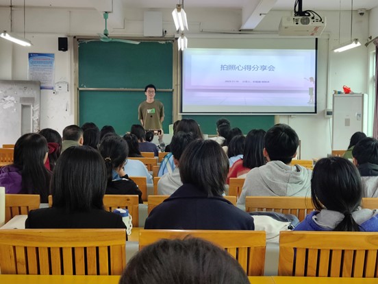 培训会上,姚敏津向参会成员介绍了关于相机的基本操作,首先是对相机各类功能分区的介绍,让参会成员对相机各按键功能有了初步认识,并从快门、光圈、感光度三个参数带领大家认识了摄影的基本要求,同时向大家介绍了光圈的相关知识。随后,彭楷瀚以PPT展示的形式为大家介绍了构图相关原则,向大家介绍了会议拍照和活动拍照的注意事项,并与大家分享了个人拍照心得。