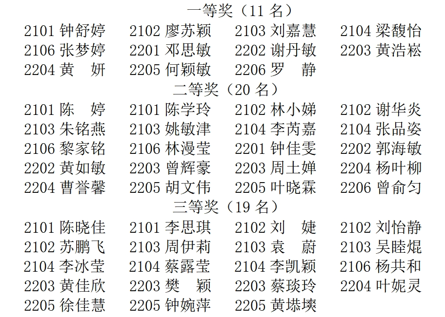 专业课程考试成绩优秀奖获奖名单如下:
