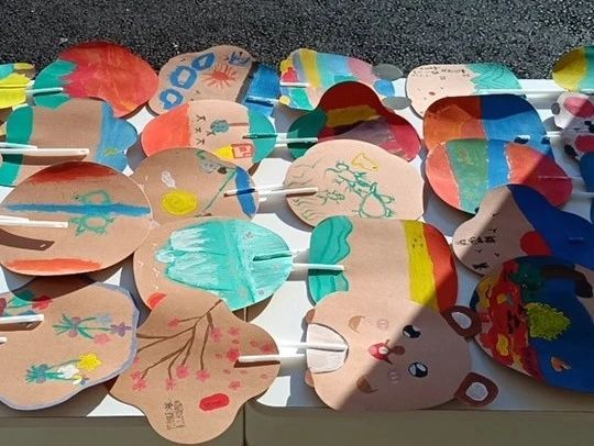志愿者介绍了团扇的历史与发展以及创作步骤。通过动手实践和作品点评,让小学生们进一步了解团扇,大家用稚嫩的画笔,鲜艳的颜色,创作出独一无二的作品。