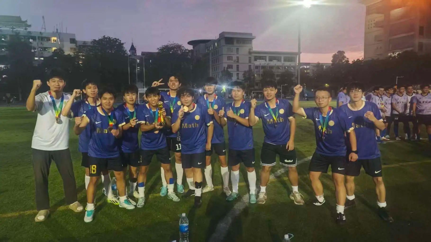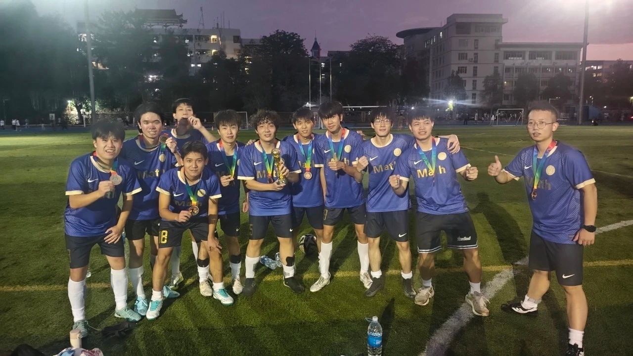 绿茵载誉,“数”你最燃!数学学院征战“文祠杯”,以精密战术为笔,用热血拼搏作墨,最终斩获男子乙A组季军荣耀!每一次奔跑都算数,每一份坚持都闪耀,这枚奖牌,是全体队员的勋章,更是数学人不服输的证明!