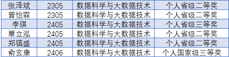 我院数据科学与大数据专业学子不负韶华、勤学苦练,在各类各级比赛中锐意进取、奋勇拼搏,不断突破自我,斩获多项荣誉。