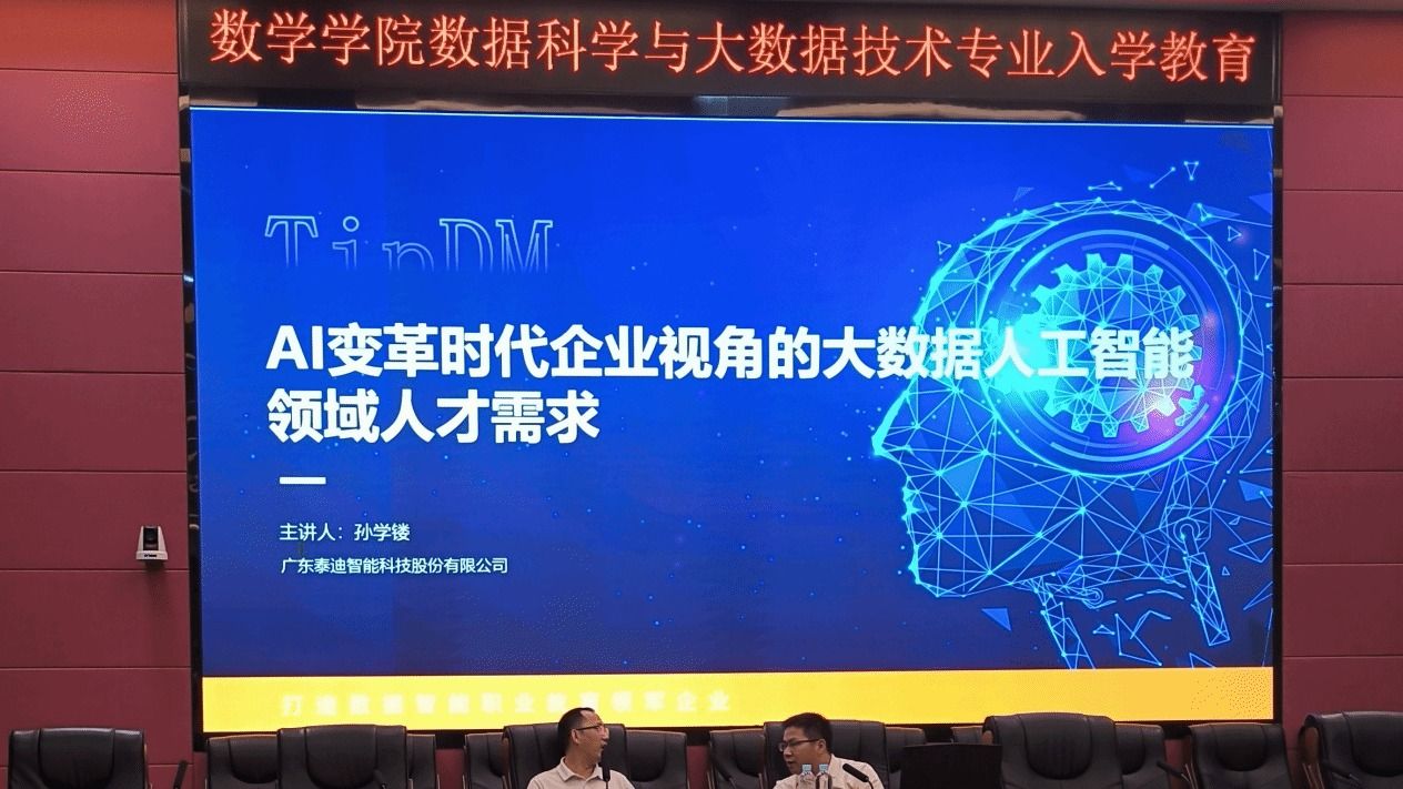 11月7日下午,数学学院在文科楼121教室举办数据科学与大数据技术专业认知教育活动,特邀广东泰迪智能科技股份有限公司孙学镂总监担任主讲。2023-2025级该专业学生参加活动,数学学院院长许鸿儒出席并主持介绍环节。