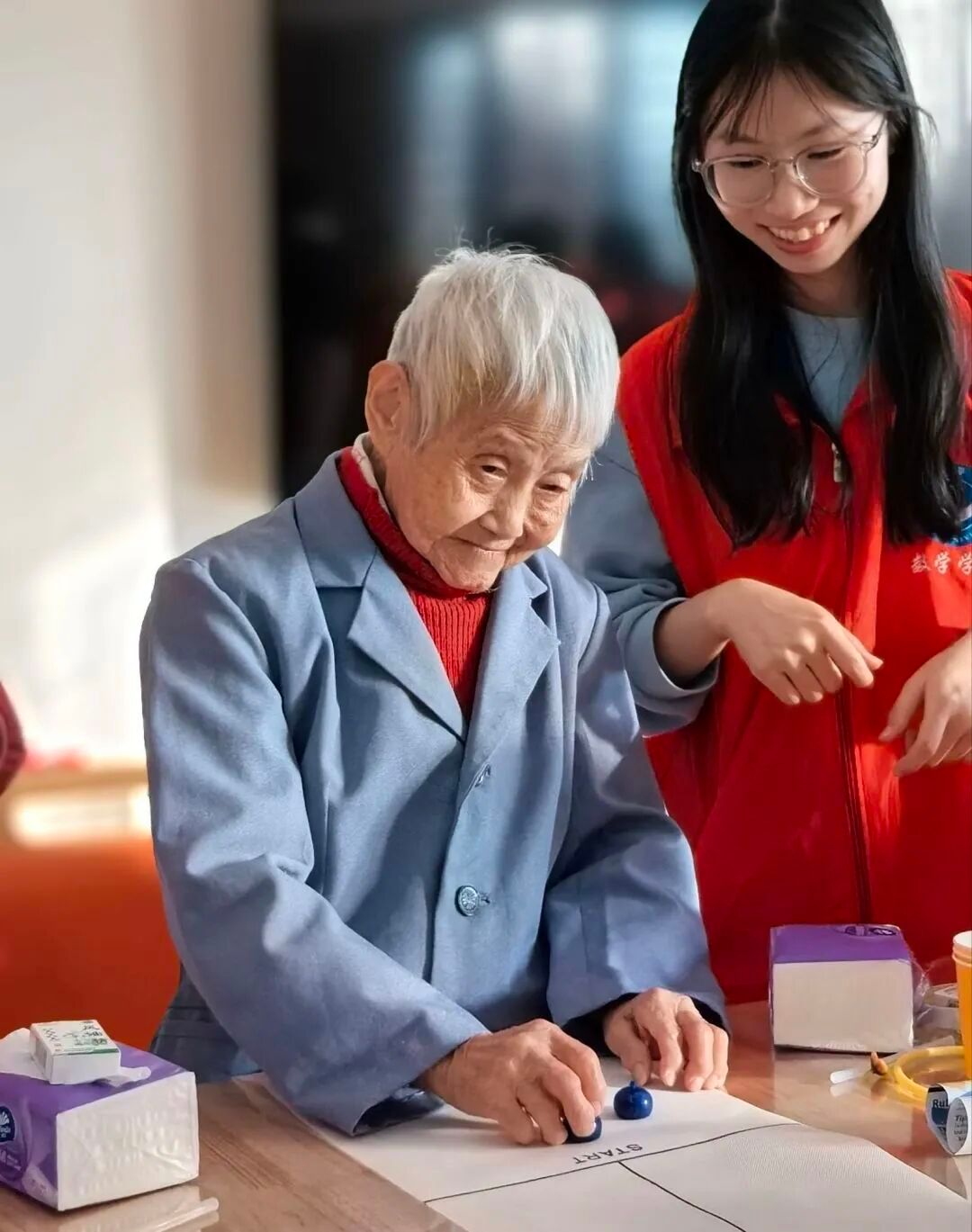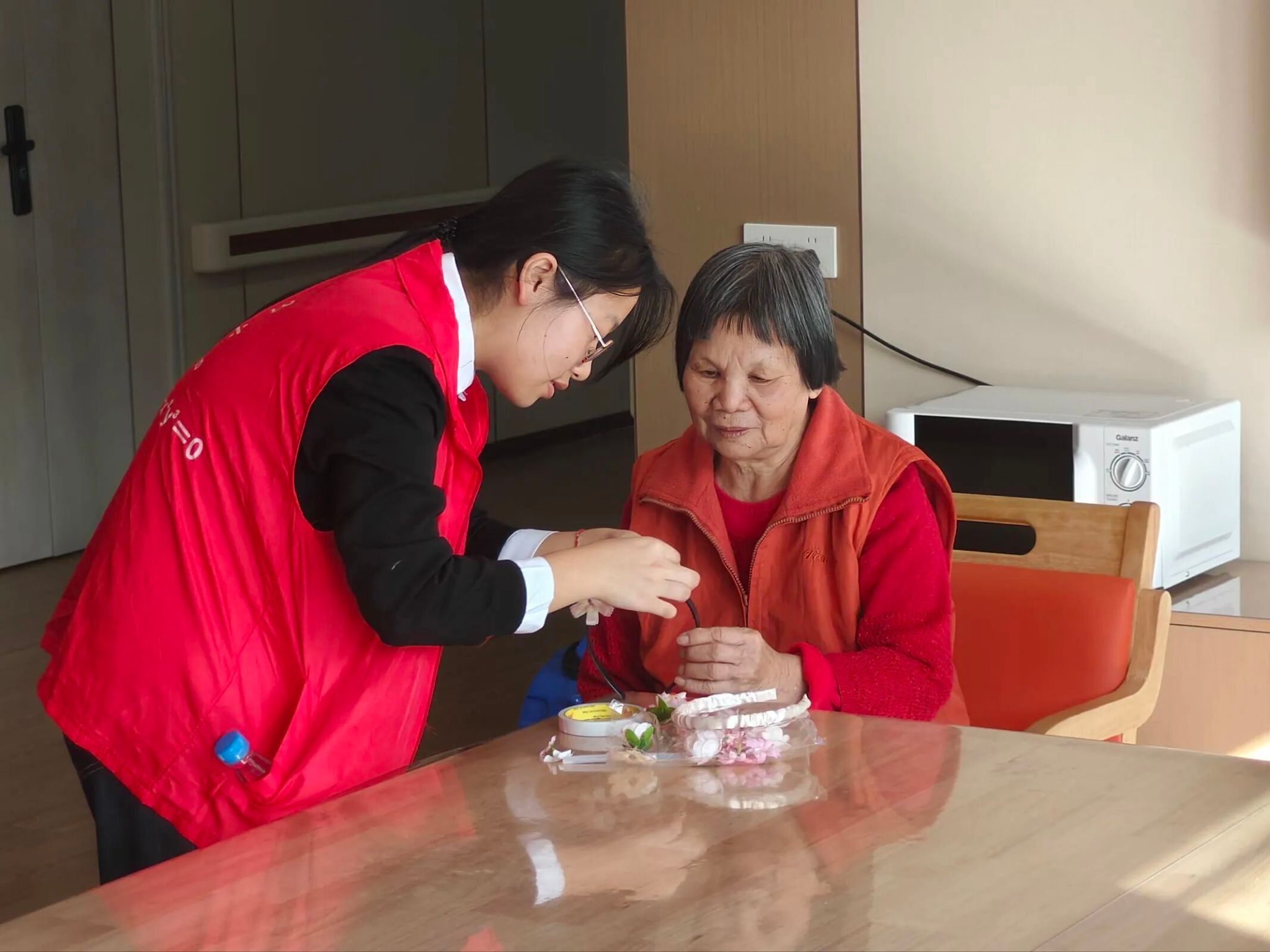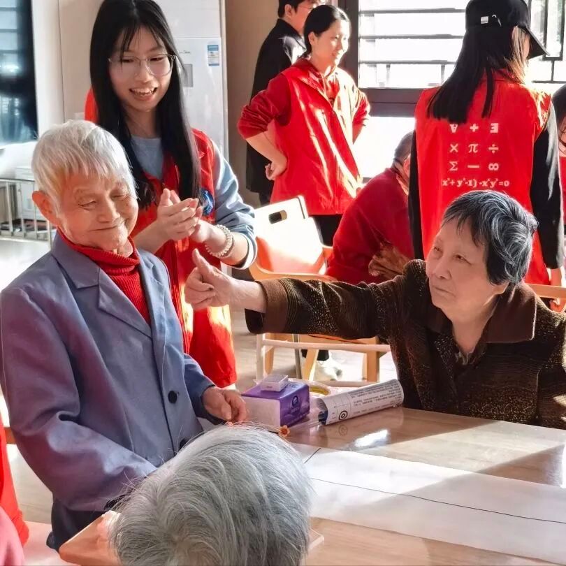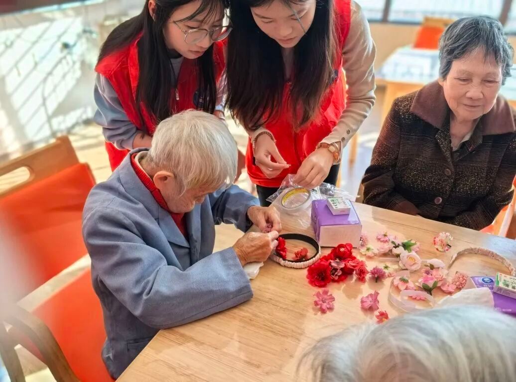 当老人们苍白的鬓边被同学们簪上鲜花