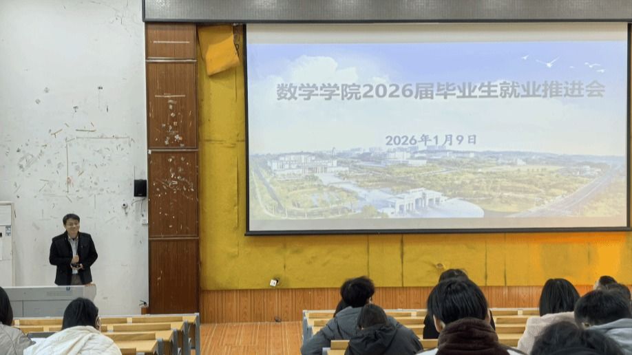 为全面总结教育实习成果,扎实推进毕业生就业工作,2026年1月9日,数学学院在田师100教室召开2026届毕业生教育实习总结暨就业推进大会。学院党委副书记黄秋石、师范技能教研室主任张俊怀、毕业班辅导员及班主任出席,2026届全体在校毕业生近200人参加会议。
