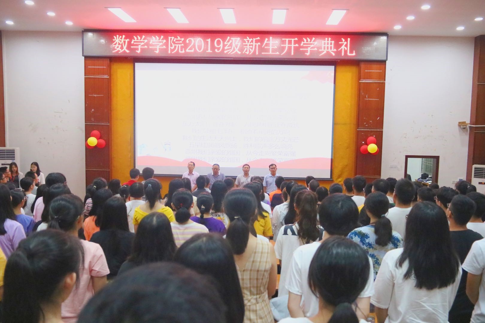 9月9日晚,嘉应学院数学学院2019级新生开学典礼在田师100举行。数学学院党总支书记古定桂、院长陈德华、副院长叶运华和副院长许鸿儒、2019级班主任以及辅导员等出席本次典礼。本次大会由许鸿儒副院长主持。
