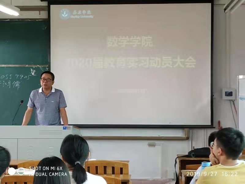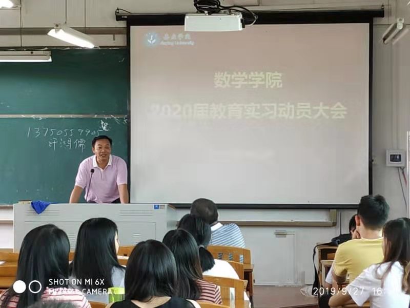 2019年9月27日,我院在田师404举行2020届师范教育实习动员会。我院古定桂书记,陈德华院长,叶运华副院长,许鸿儒副院长,辅导员罗裕霞,办公室主任赖嘉导,教务秘书黄钦,毕业班全体学生以及外院学生代表参加本次动员会。