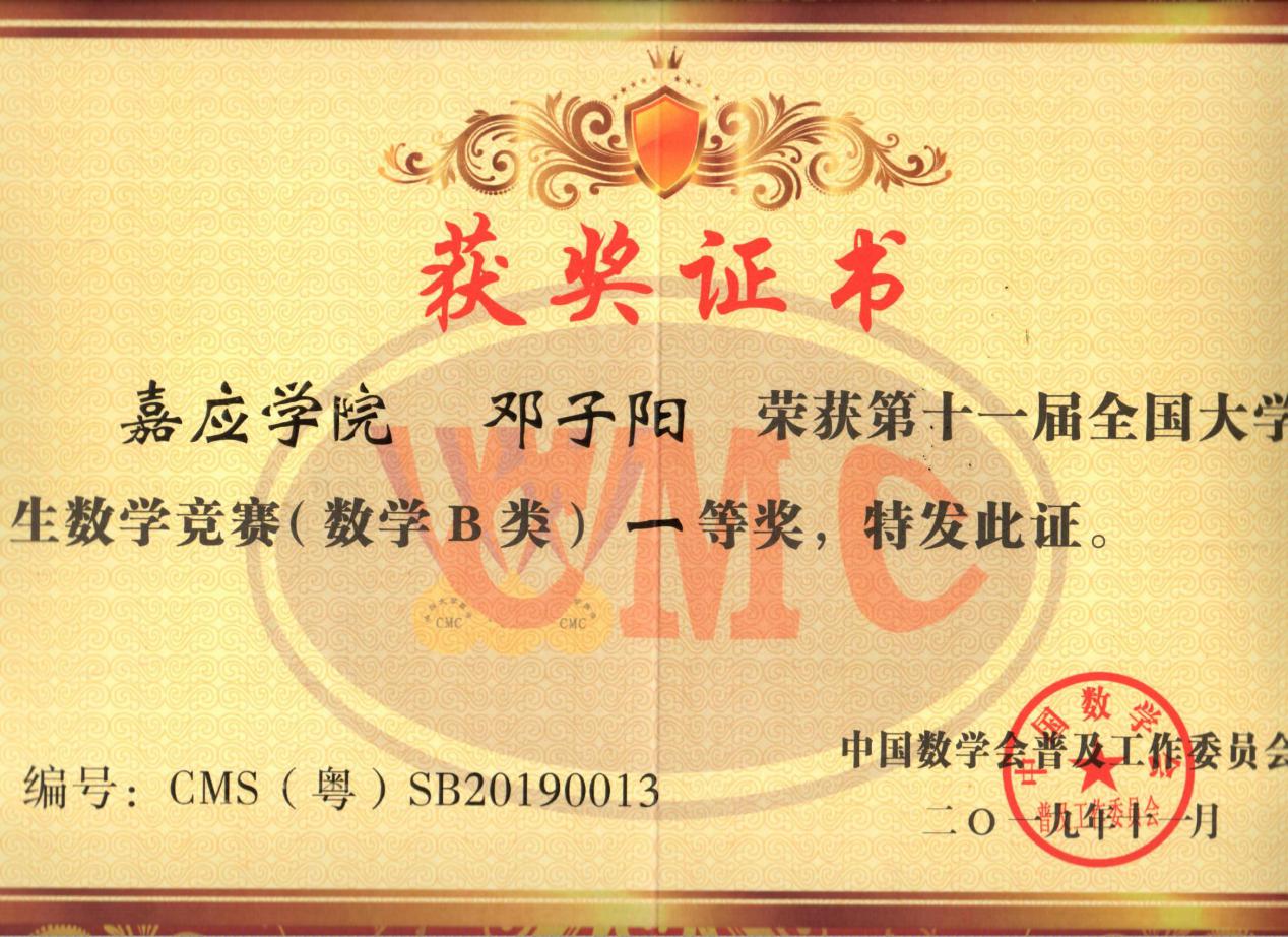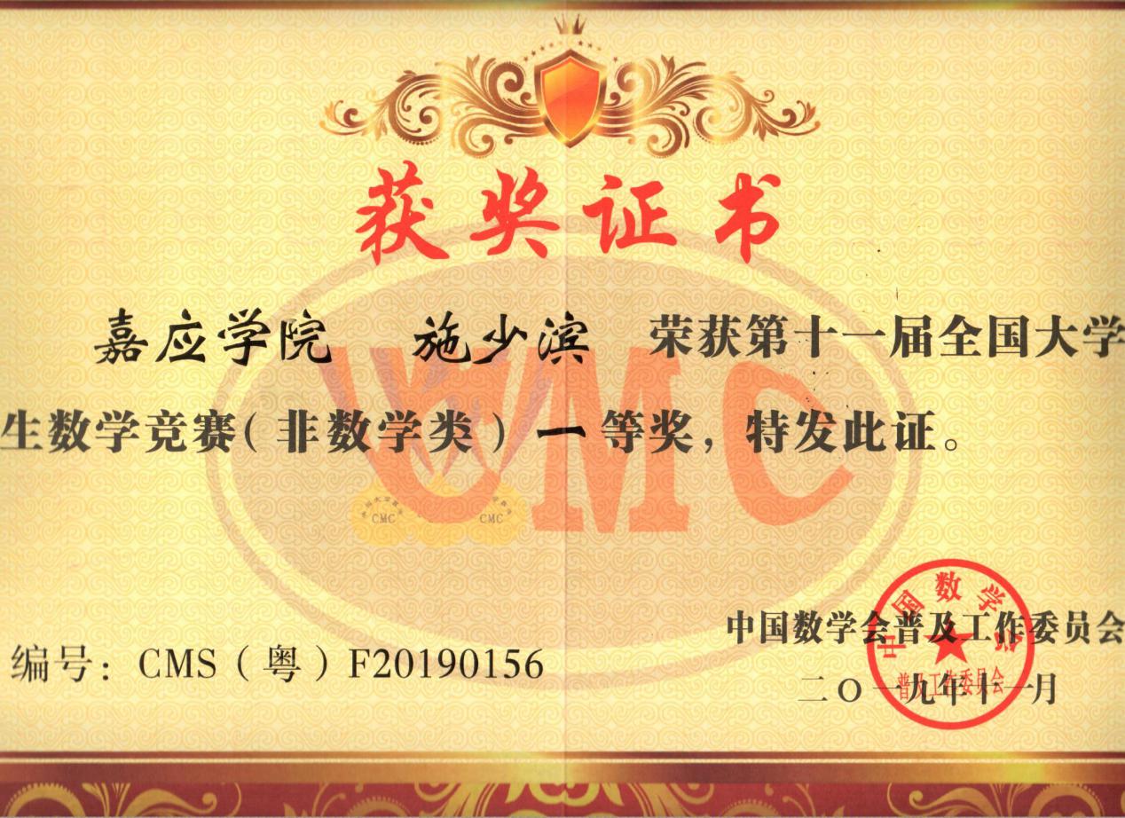 近日,第十一届全国大学生数学竞赛和第九届广东省大学生数学竞赛结果公布。在教务处、校团委、学生工作部、数学学院等有关单位精心组织下,我校学子积极参赛、表现出色,共获19个奖项,其中数学学院邓子阳同学和地理科学与旅游学院施少滨同学分获数学专业类和非数学专业类全国一等奖,数学学院郑杰津同学获数学专业类全国二等奖、生命科学学院陈志彬同学和物理与光信息科技学院卢幼纯同学分获非数学专业类全国二等奖。