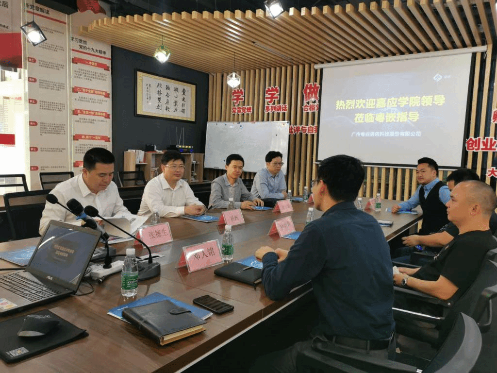 第二间实践教学基地是广州粤嵌通信科技股份有限公司,该公司和我校有着比较长久的合作,我院信息与计算科学专业12级毕业生贺紫微已经在该公司担任H5前端培训总监。在考察了该基地的教学场所和住宿条件之后,粤嵌公司总监钟锦辉介绍了公司的业务范围。之后双方进行了热烈的探讨交流,达成了进一步合作的意向。