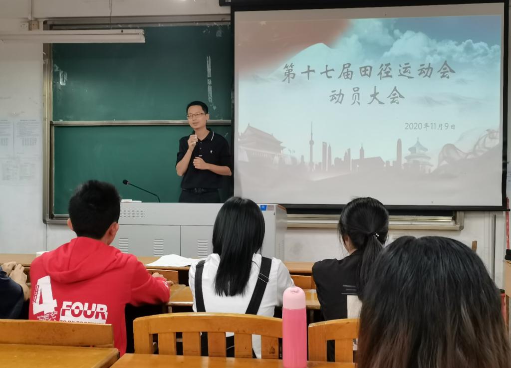 辅导员先是向大家描述我院历年佳绩,以此勉励各位运动员能够在此次校运会中再创辉煌。其次对学院近阶段的工作进行总结,希望各学生骨干继续相互配合,在校运会期间做好每一项工作,确保运动会能够成功举行。