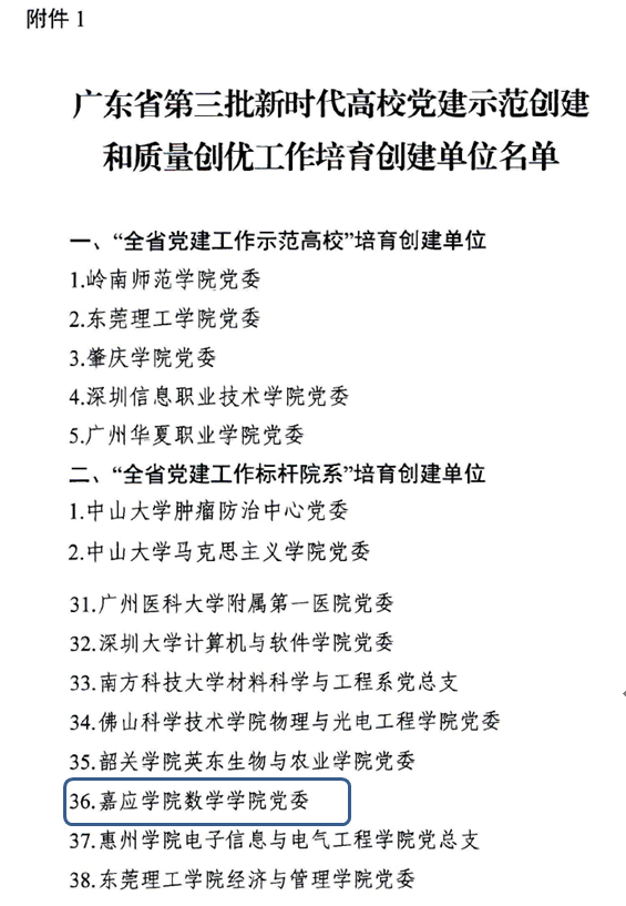近日,广东省委教育工委公布了第三批全省党建工作示范高校、标杆院系、样板支部培育创建单位名单,我院党委入选“全省党建工作标杆院系”培育创建单位。