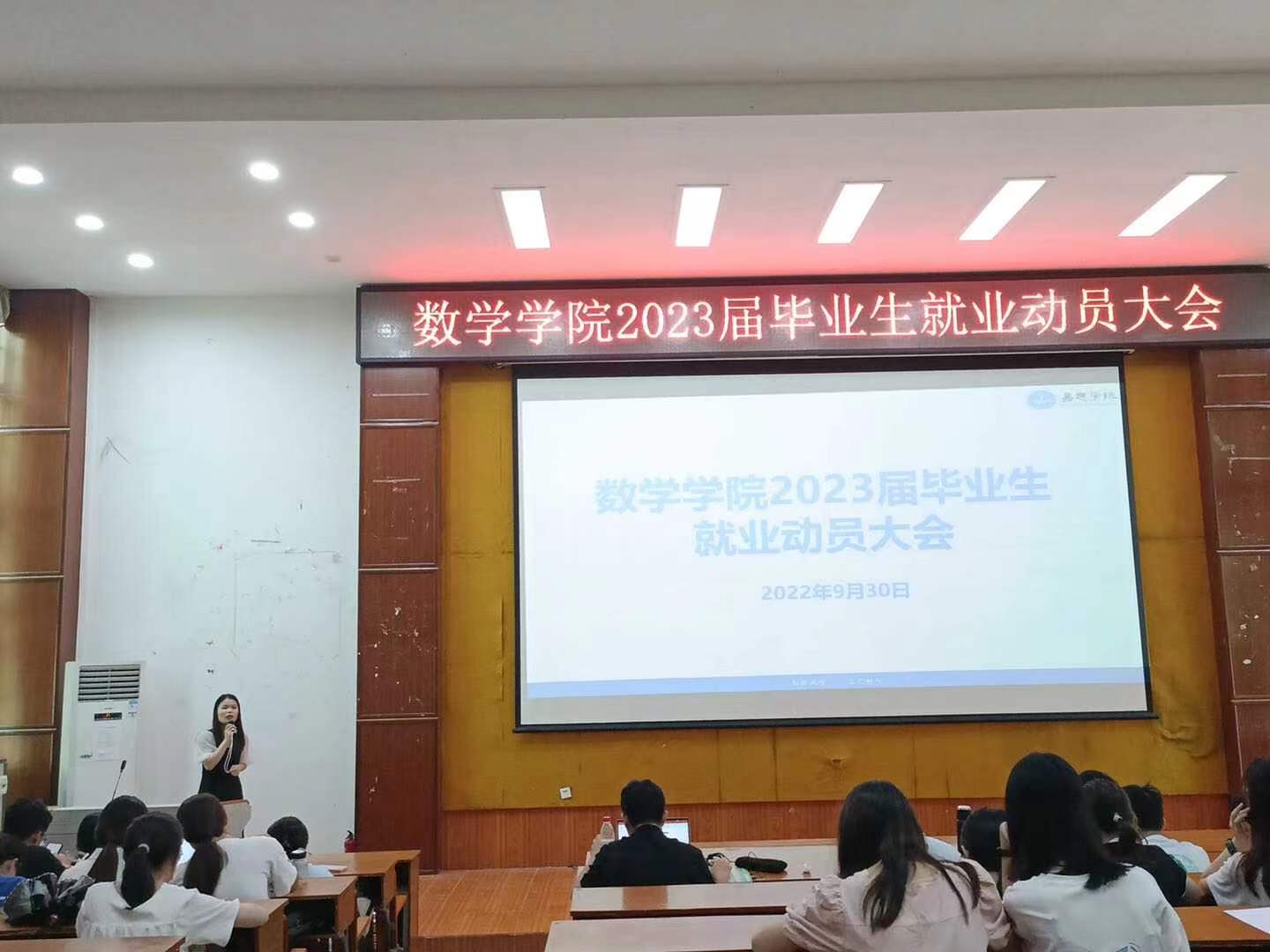 为深入贯彻落实党中央、国务院“稳就业”“保就业”工作决策部署,促进毕业生积极就业,提高就业质量,9月30日上午,我院在田师100阶梯教室召开了2023届毕业生就业动员大会。学院党委副书记李晓科、辅导员罗丽叶和2023届师范毕业生参加了会议。