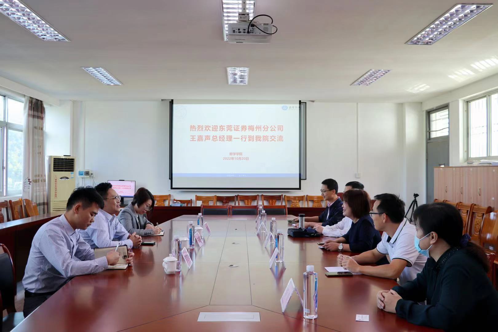 10月20日上午,东莞证券梅州分公司总经理王嘉声一行到我院开展座谈交流。学院党委书记杨燕、院长黄可坤、党委副书记李晓科、副院长许鸿儒、李娟和负责就业工作的辅导员参加了座谈会。