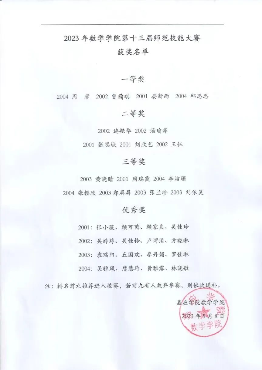以下为获奖选手