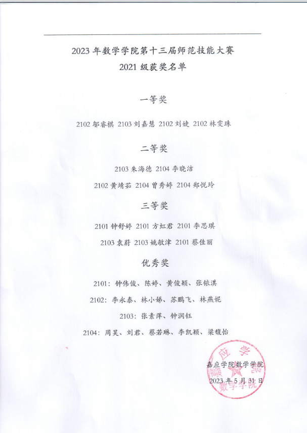 附:数学学院第十三届师范技能大赛获奖名单