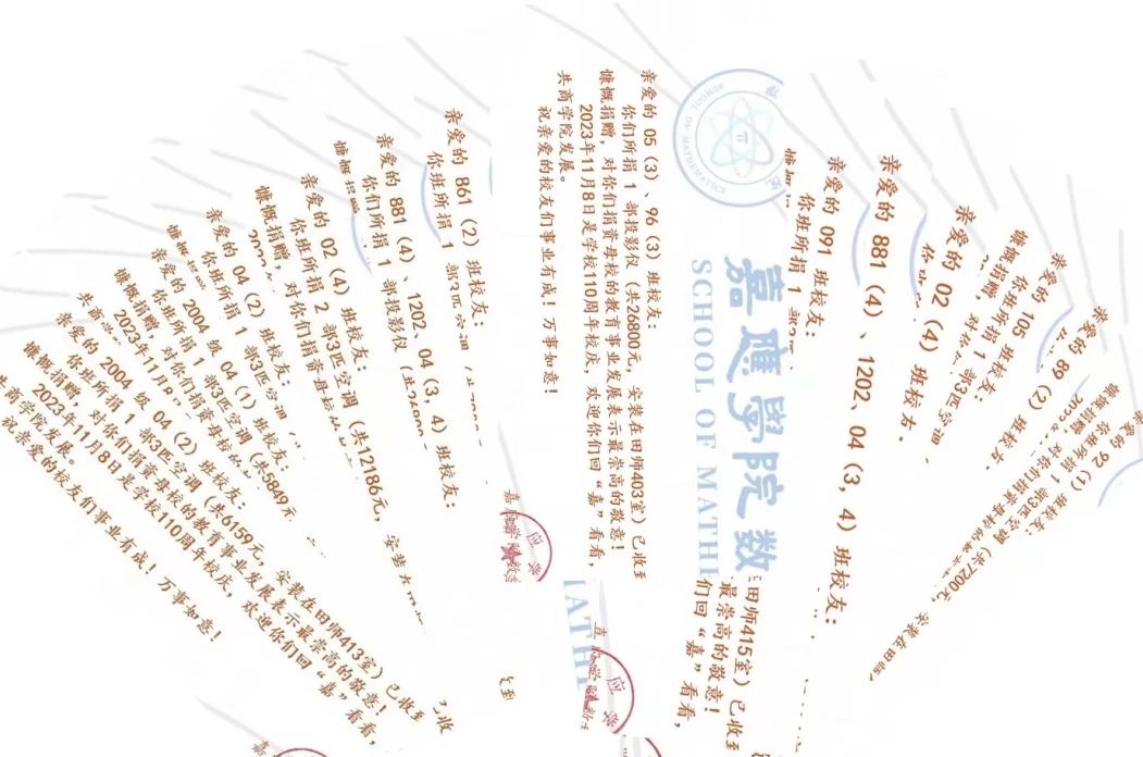 落其实者思其树,饮其流者怀其源。近日,数院各届校友们向数学学院慷慨捐赠了一批批崭新的物资,展示了校友们对母校深厚的感情和支持。