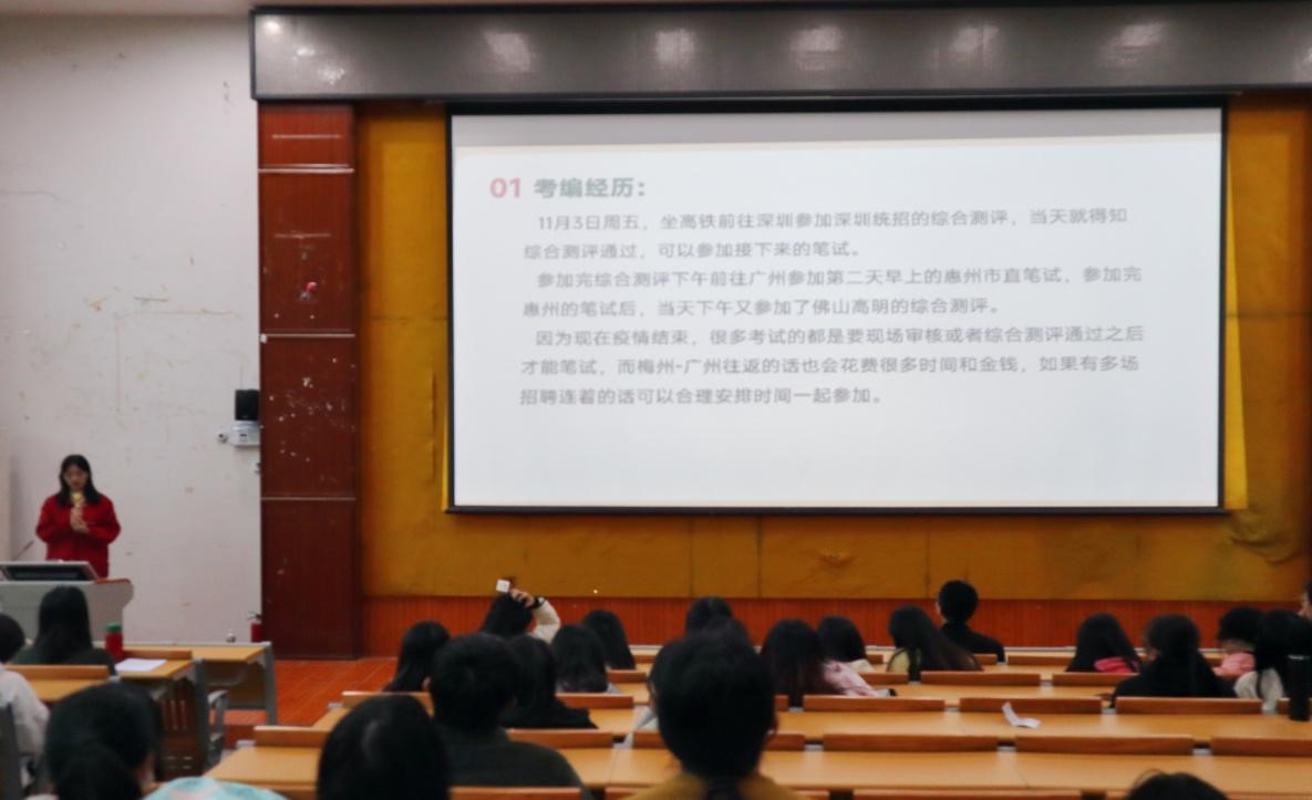 会上,学院党委副书记李晓科结合学院发展及学科建设优势,分析了近年来毕业生就业现状和就业形势,并针对就业关键点提出了建议。强调毕业生在当前严峻的就业形势下,要更加重视就业,转变就业观念,积极适应就业形势,坚定就业信心,树立正确的就业观。房华玲老师从就业形势、就业手续、就业信息和求职建议等方面进行了详细讲解,并依据日常工作中遇到的毕业生问题及疑惑进行了说明,引导毕业生调整好心态,杜绝懒就业、慢就业思想。2001班廖燕纯同学从心态调整、就业信息获取、简历制作、笔试面试准备等方面,向大家分享了自己的考编经验。
