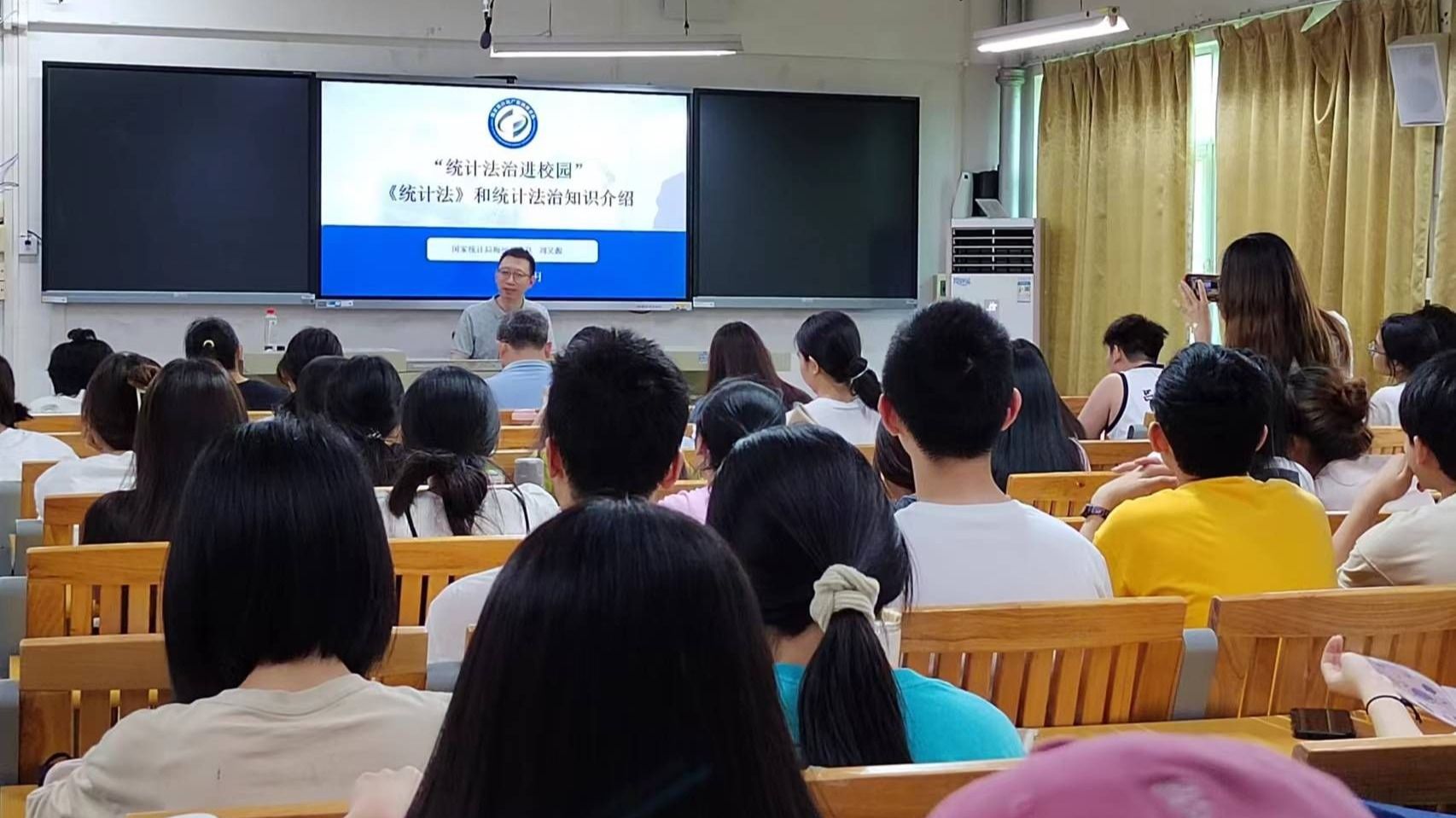 为加强应用统计学专业学生对统计法律法规的应用和实践,6月19日,我院邀请国家统计局梅州调查队的统计业务骨干到田师416教室开展“统计法制进校园”专题报告活动。国家统计局梅州调查队干部职工代表,应用统计专业和相关专业课程教师,2021级、2022级应用统计学专业全体学生共100余人参加了讲座活动。