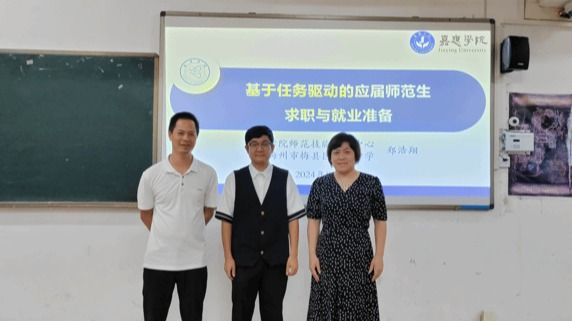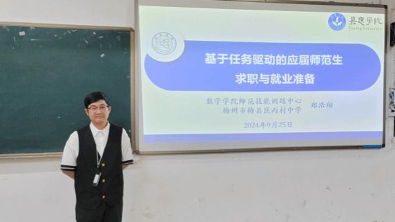 为了提升我院师范生的专业技能和就业竞争力,9月25日晚,我院特别邀请了丙村中学郑浩翔老师(郑老师是我院2023届优秀毕业生,现兼任我院师范技能训练中心指导教师)为大四师范生作题为《应届师范生求职与就业准备》的专题讲座,李娟副院长、张俊怀博士参加了此次讲座,此次讲座旨在帮助即将步入职场的毕业生们更好地规划未来,并在求职过程中更加自信从容。