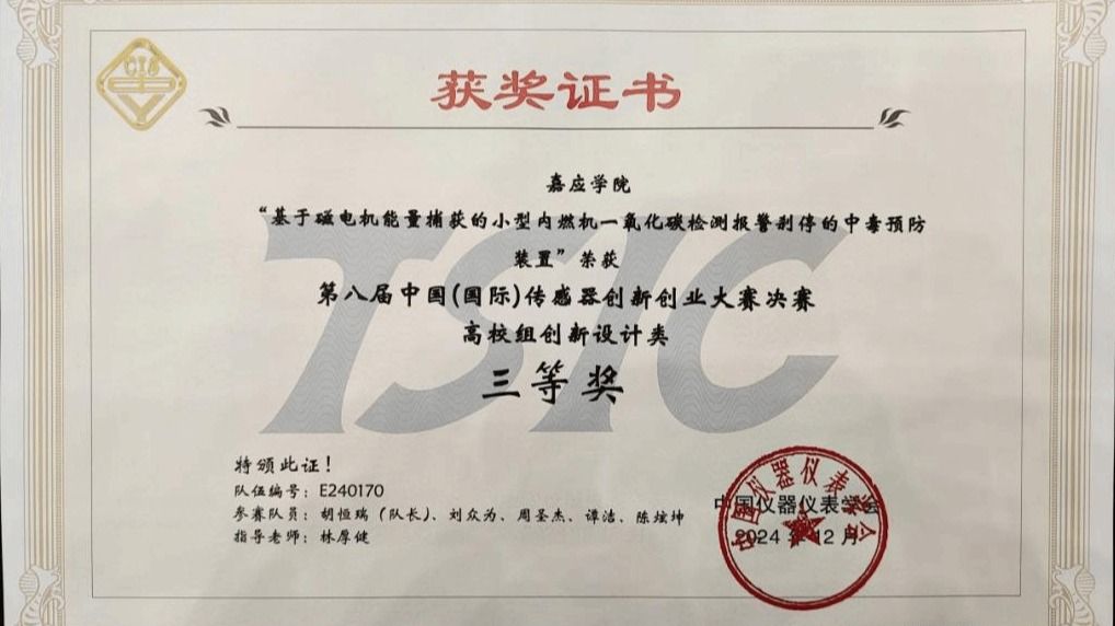 日前,2024年第八届中国(国际)传感器创新创业大赛决赛在郑州举行,由我校数学学院的胡恒瑞、物理与电子工程学院刘众为和陈炫坤等同学组成的嘉应学院代表队摘得国赛三等奖。