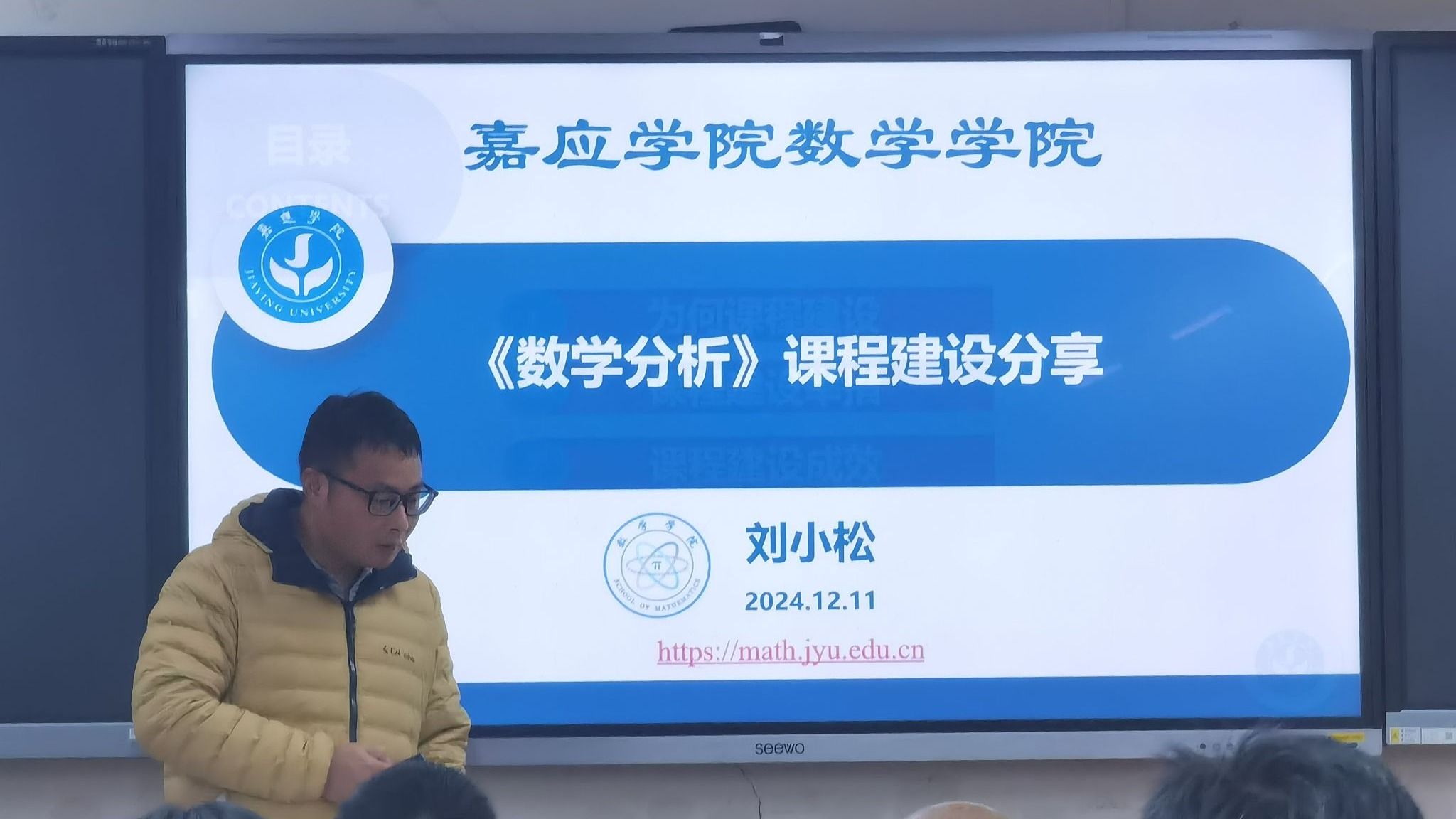 会上,刘小松老师分享了《数学分析》课程建设的进展情况。