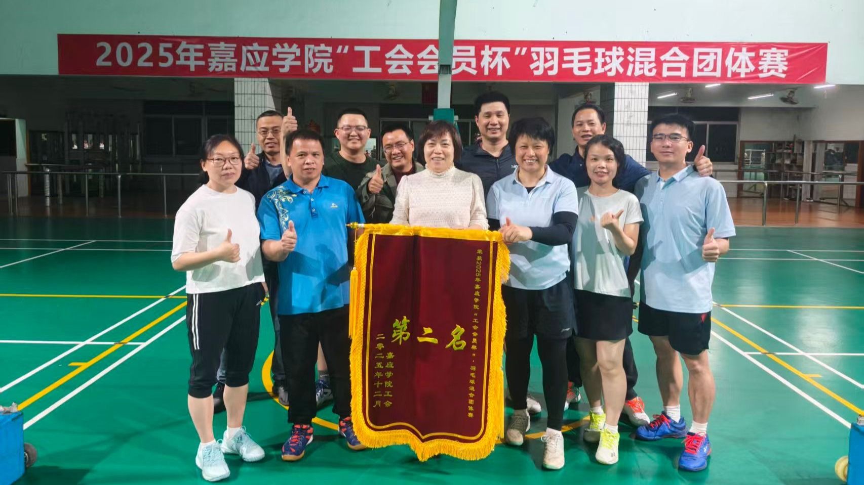 2025年嘉应学院工会会员杯羽毛球混合团体赛于昨日圆满落幕,我院教职工羽毛球队在此次赛事中表现亮眼,历史性地闯入决赛,最终荣获亚军。