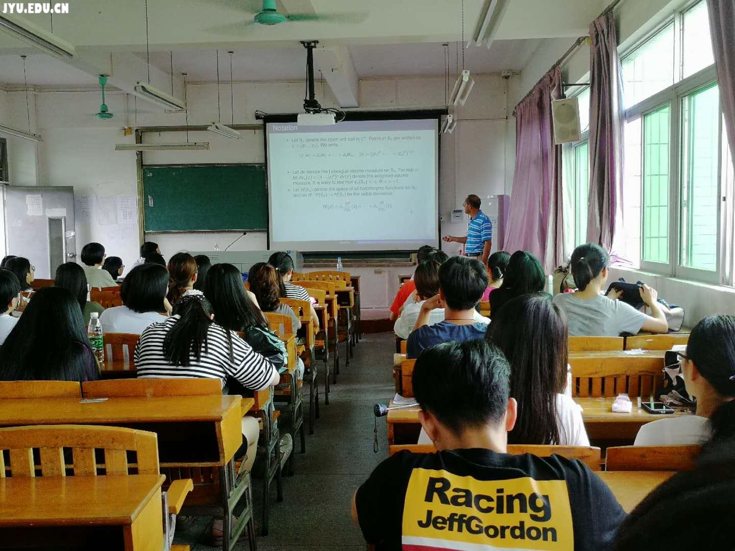 6月21日下午,朱克和在田师404作了题为“Spectral theory of multiplication operators on Bergman spaces”的学术报告,这是朱克和教授的最新成果,拟发表在权威杂志JFA上,也是首次报告该领域的内容;娄增建教授在田师415作了题为“Korenblum’s Maximum Modulus Principle”的学术报告,报告深入简出,语言通俗易懂,具备简单的复分析知识就能很好的听懂报告,使得大家获益匪浅;赵如汉教授在田师416作了题为“On Berezin type operators and Toeplitz operators”的学术报告,就目前函数空间与算子理论的最新发展、研究热点等作了很好的报告。