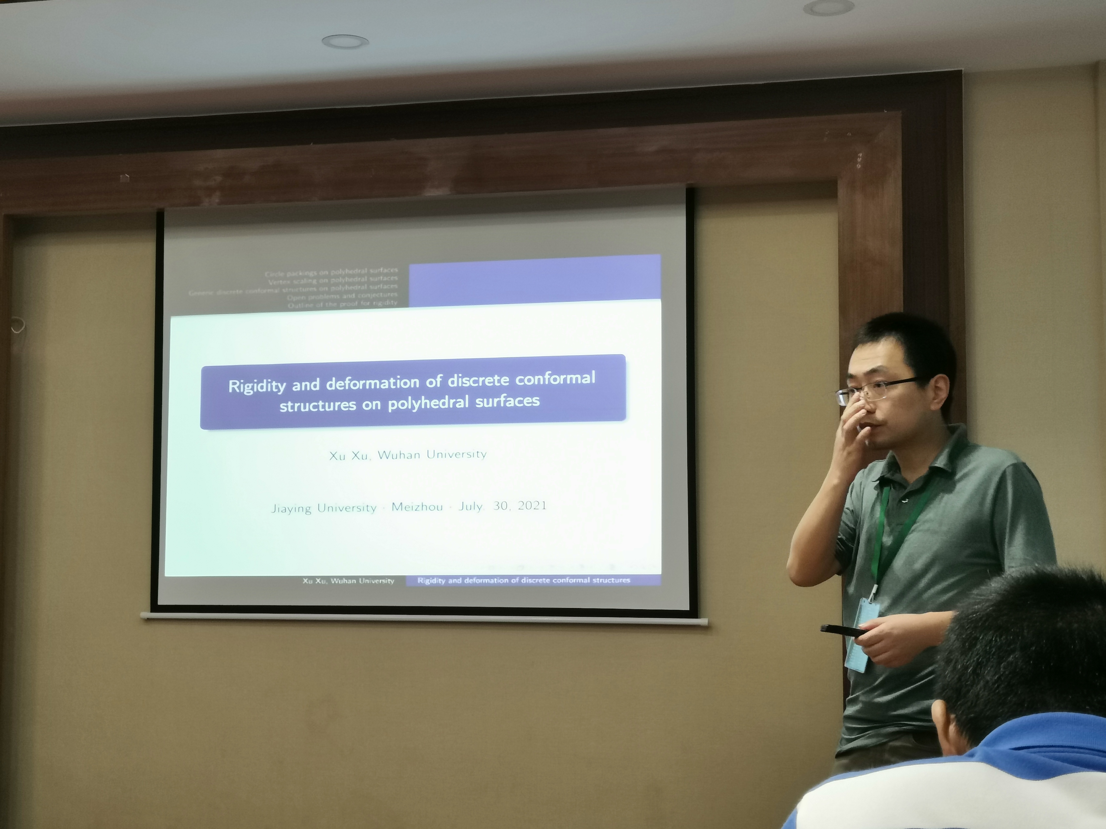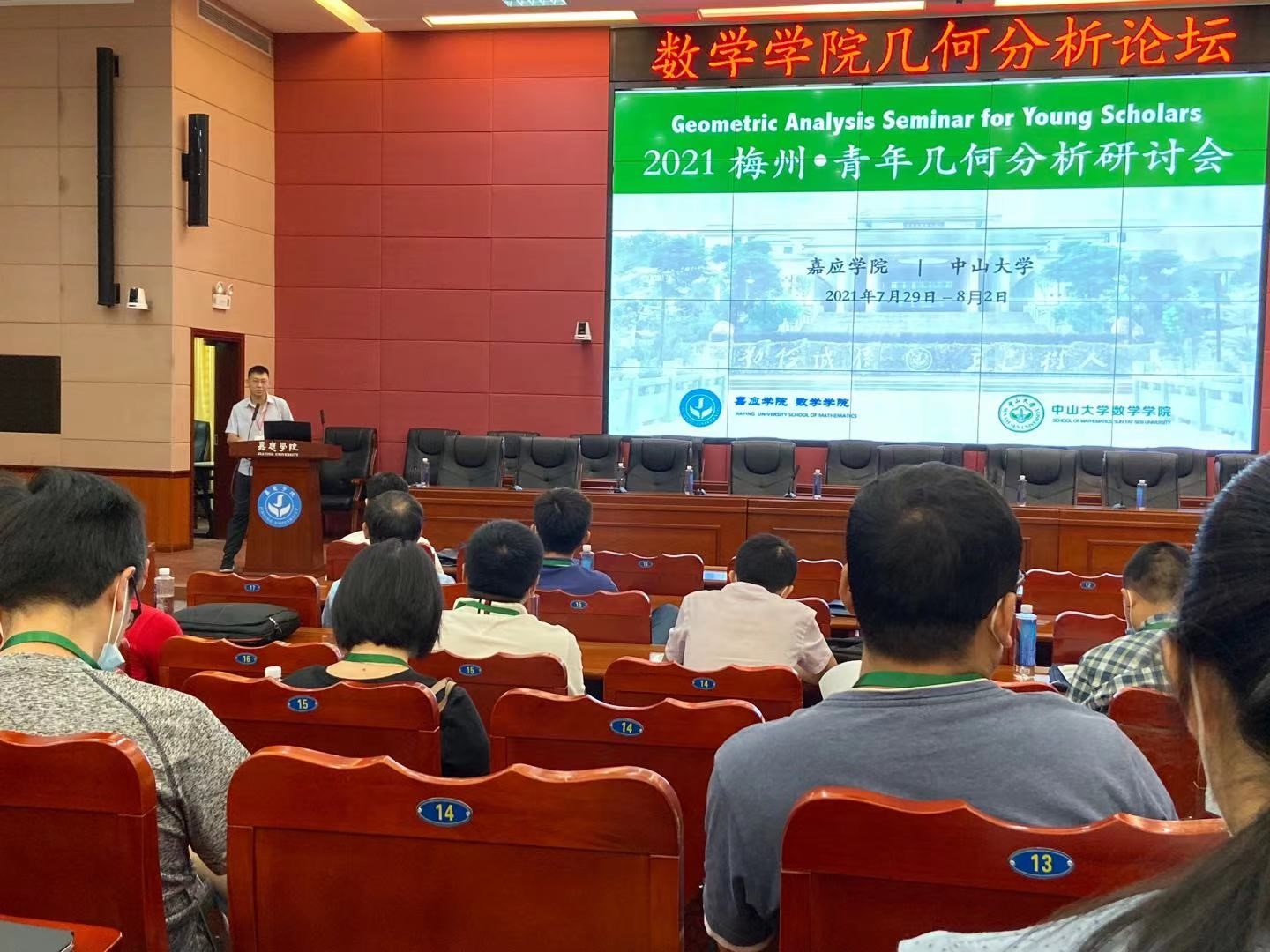 7月30日上午,为期3天的青年几何分析研讨会(2021梅州)在我校百年纪念大楼121拉开序幕。本次会议由嘉应学学数学学院与中山大学数学学院联合主办,并得到了国家自然科学基金创新研究群体项目“流形上的几何与拓扑”(NSFC NO.1152110)的支持。来自于北京大学、复旦大学、中科院、中国科技大学、上海交大、同济大学、武汉大学、南开大学、山东大学、厦门大学、中山大学等20多所高校的50多名校外专家学者参加本次会议。嘉应学院数学学院的相关教师10余人参加了本次会议。开幕式由中山大学副教授、博士生导师袁伟主持。