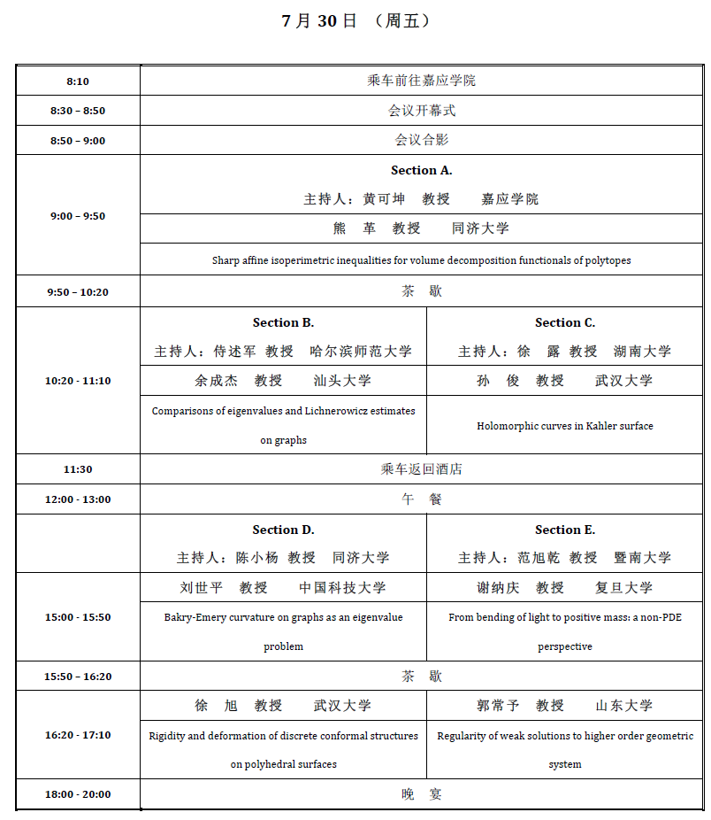 本次会议为期3天,共17场学术报告,参加会议的青年学者研究领域主要集中在几何分析与偏微分方程及其相关领域,涵盖了诸如复几何、度量几何、子流形几何、共形几何、离散几何、广义相对论、曲率流、指标理论、完全非线性偏微分方程等众多研究方向。