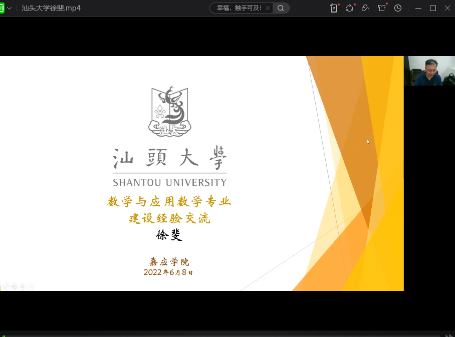 根据省级质量工程函数论课程群教研室的建设规划数学学院2022年68日和6月9日分别邀请了汕头大学徐斐教授和广州大学曹广福教授为我院师生作教研报告。徐斐教授作了题为数学与应用数学专业建设经验分享”的报告,曹广福教授作了题为课题式教学法探析。数学学院院长黄可坤教授、许鸿儒副院长、李娟副院长与专业负责人及函数论教研室全体教师在田师405听取了报告