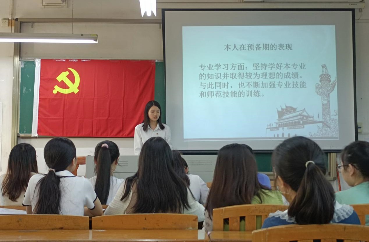 为深入贯彻落实《中国共产党普通高等学校基层组织工作条例》,优化完善学生党员发展工作,11月5日下午,我院学生第一党支部和学生第二党支部分别在田家炳师范大楼414和415室召开预备党员转正会议。会议首次采用答辩的形式,由学生党支部书记主持,曾文詹等19名预备党员同志接受转正答辩考核。