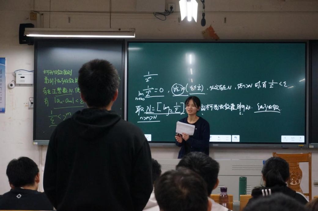 学生党员通过课程讲解和答疑交流等环节,充分利用自己的学习经验为新生提供了个性化指导。学生党员根据同学们的需求,对相应章节进行重难点梳理,并详细讲解了收敛数列的性质和柯西收敛准则等概念,结合例题帮助同学们进行理解和掌握。随后,学生党员耐心地解答了同学们提出的相关问题,展现了学生党员良好的精神风貌。现场气氛热烈,新生收获满满。