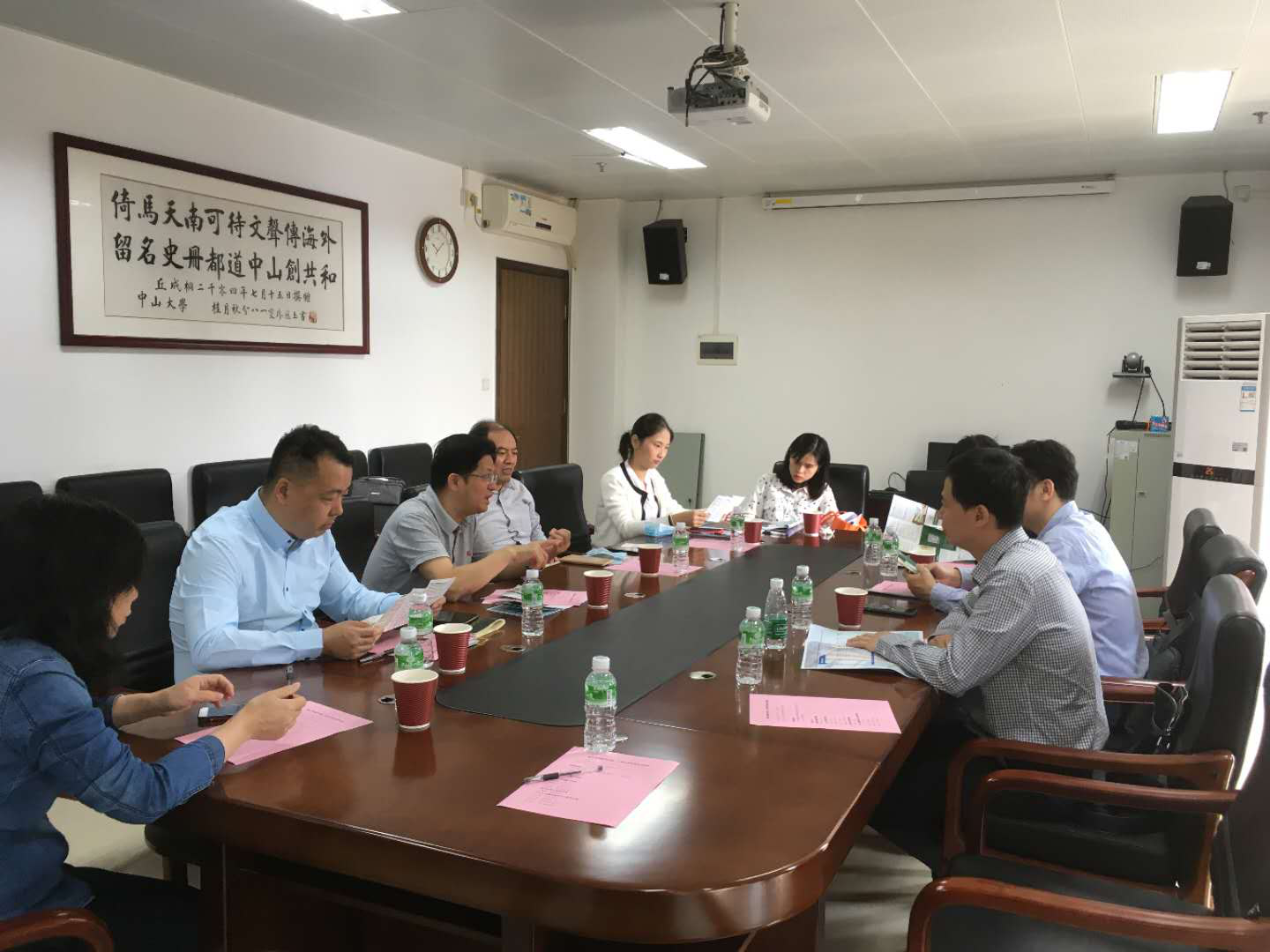黄可坤院长还去中山大学数学学院进行了交流,得到了中山大学数学学院院长陈兵龙、书记郝登峰和副院长冼军等同志的热情接待。双方首先各自介绍了本院的基本情况,然后就人才培养体系,教学管理制度体系和教学质量监控等方面进行了深入交流。