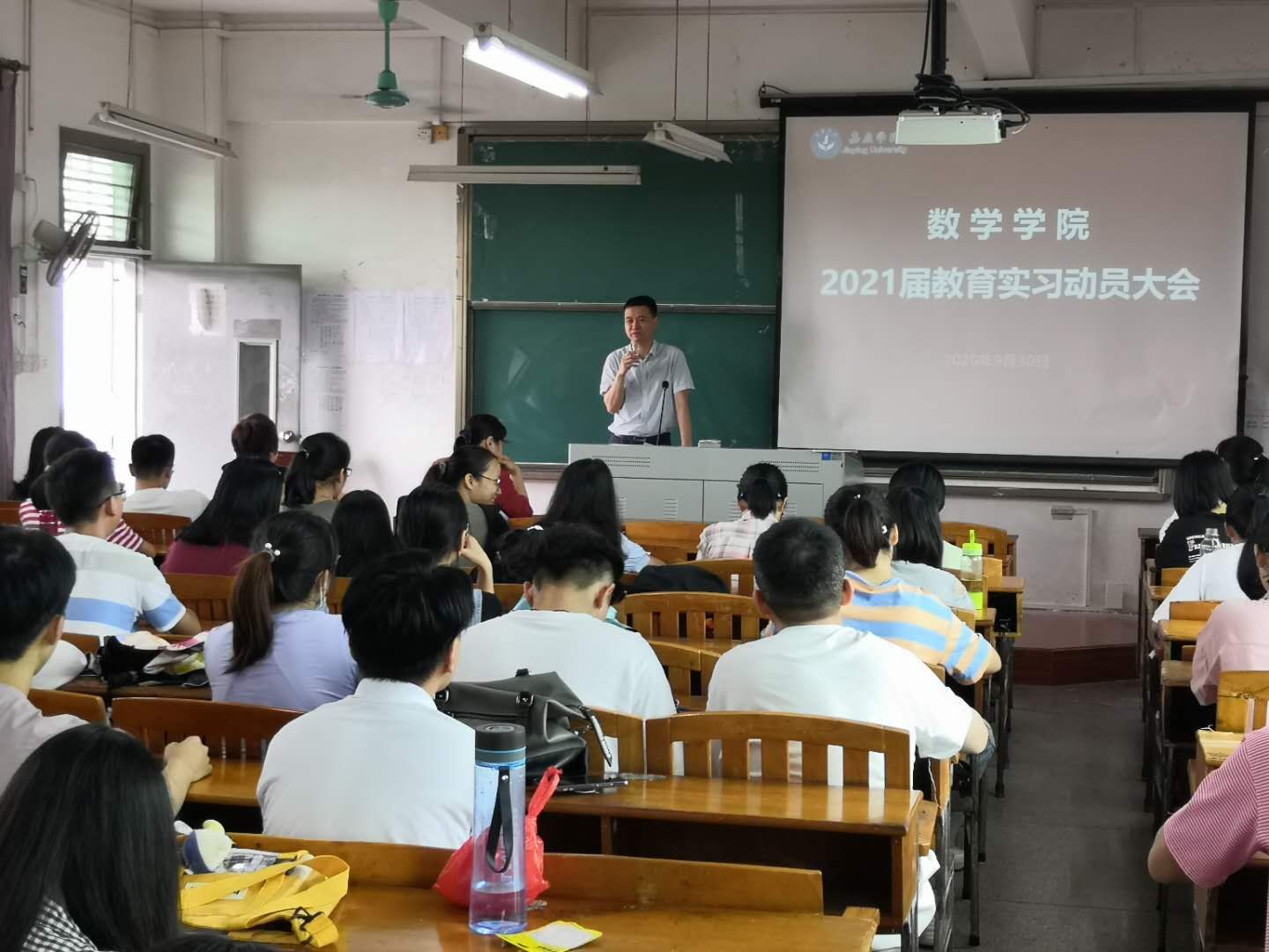 930日上午,数学学院在田师404教室召开了2021届师范毕业生教育实习动员大会。我院党委书记杨燕、院长黄可坤,2021届部分师范毕业生以及数学学院负责的其他学院实习生共八十余人参加了大会。此次大会由李娟副院长主持。