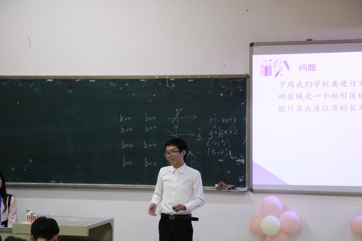 417日晚,我院数学文化节之“明日之师”师范生授课比赛决赛在公颜实训大楼B306室成功举办。比赛以“诗书养性,文章育人,你我同行,快乐为师”为主题,由我院团学主办,求索学社承办。此次比赛邀请了陈星荣副教授担任主评委。