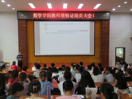 为了进一步提高我院师范生教师资格证考试通过率,6月23日下午,数学学院在田师100召开教师资格证考试动员大会,本次会议由数学学院副院长李娟主持,学院教学法老师刘生贵以及两位已经成功考取资格证的18级师范班学生代表刘琦、曾文詹向19级师范班学生介绍报考及考试相关注意事项。