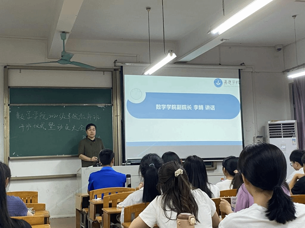 9月4日晚上,数学学院卓越数学教师班在田师403举行开仪式暨动员大会,数学学院副院长李娟,数学学院师范技能教研室主任、卓越教师班班主任张俊怀,数学学院师范技能训练中心助教及30位学院参加会议。会议由卓越教师班班主任助理郑浩翔主持。